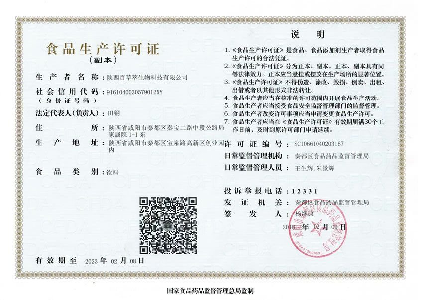 本公司現(xiàn)已與多所科研院緊密合作,公司擁有配套完整的提取、分離、萃取、柱層析、濃縮干燥等設備和技術,具有豐富的生產(chǎn)天然植物提取物的經(jīng)驗和嚴格的質(zhì)量控制體系。陜西百草萃生物科技有限公司為廣大消費著和客戶提供安全、健康、品質(zhì)高、能效強的營養(yǎng)健康品,主營產(chǎn)品包括:國食健字鋅硒寶、鋅硒寶、欣寶兒童鋅硒寶、復合鋅硒片、復合蛋白鋅、千凈顆粒、蛋白乳鐵片、瑪咖復合片等、廠家占地五十余畝,廠家建筑面積4000余m2,內(nèi)設生產(chǎn)車間、質(zhì)量控制室、產(chǎn)品檢測中心、陰涼倉庫、..
